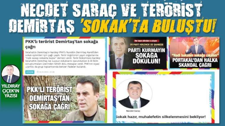 HD(P)KK sevdalı CHP’li yazar Necdet Saraç “Sokak hazır, muhalefetin silkelenmesini bekliyor!” dedikten üç gün sonra da Necdet Saraç’ın yazı ve konuşmalarında avukatlığını yaptığı terörist Selahattin Demirtaş’ın kardeşi terörist Nurettin Demirtaş da “Halk savaşı sokakta başlar” çağrısında bulunmuştur.