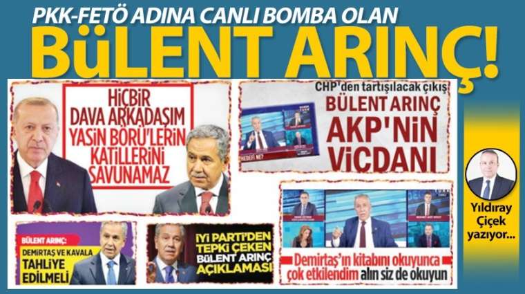 Dediğim gibi, bu cümlelerin olduğu yazım Perşembe akşam saat 20.00’de baskıya girdi ve Cuma günü de Türkiye’ye dağıtıldı. Ama bu yazıyı yazdığım Perşembe günü akşam, saat 22.00-23.00 arasında Bülent Arınç Haber Türk ekranlarında bölücülerin sponsoru Osman Kavala ve terörist Demirtaş konusunda hezeyanlarını kusuyordu. Onların tahliyesini istiyor, onların kitaplarını övüyor, PKK-FETÖ mücadelesi veren yargı mensuplarını tehdit ediyordu. Perşembe günü yazdığım, Cuma günü çıkan yazımın bir muhatabı da böylelikle Bülent Arınç olmuştu.