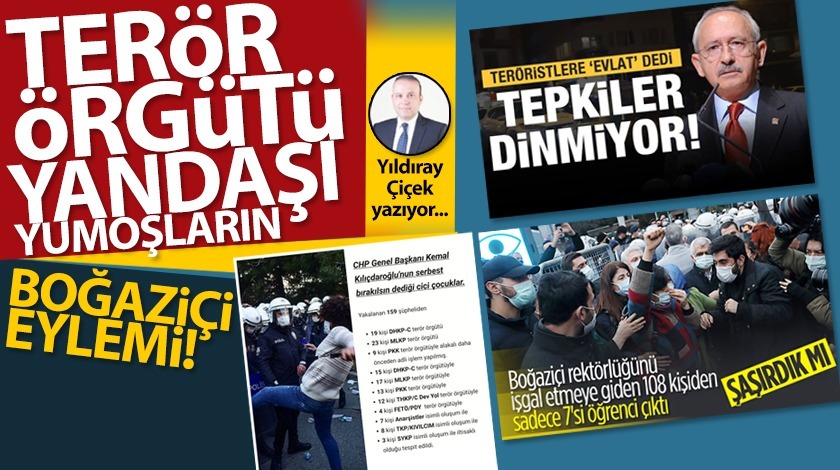 Boğaziçi Üniversitesi’nde terör yandaşlarının yaptığı eylemlere kim destek veriyorsa suç işlemektedir ve bunların asıl amacı Türkiye’yi karıştırmak olduğu bilinmektedir. Bu terör yandaşlarına destek açıklaması yapan siyasetçi, sanatçı, yazar, yorumcu, sivil toplum kuruluşu kim varsa hepsi birer birer not alınmalıdır. Gezi, Hendek ve Kobani olaylarında yapılmak istenen neyse şimdi de aynısının kıvılcımı yakılmak istenmektedir. Kemal Kılıçdaroğlu’nun terör yandaşı olan “Yumoş evlatlarının” öğrenci süsü verilerek terör estirmesine asla izin verilmemelidir. Terör yandaşının demokrasi hakkı olmaz. Devlet sadece onun başını ezmekle sorumludur.