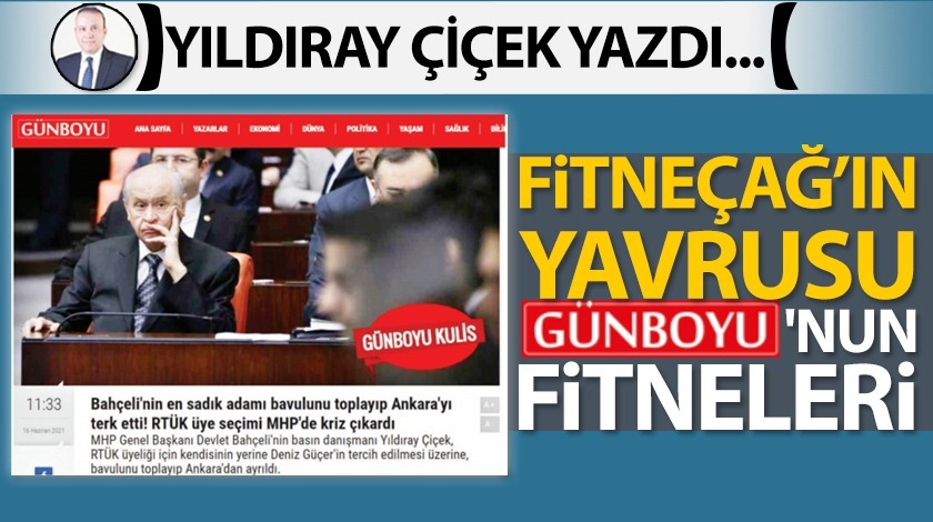 RTÜK üyeliği seçimleri gündemde dahi yokken eşimin hastanede süren iki haftalık fizik tedavisi sonrası, onun fiziki dinlenmesi için, Sayın Genel Başkanımızdan da izin alarak onu tatile götürdüm. Bit yavrusu Günboyu gazetesi “Bahçeli’nin en sadık adamı bavulunu toplayıp Ankara’yı terk etti!” başlıklı haberinden günler önce de zaten Ankara’ya dönmüştüm. Ama Fitneçağ’ın yavrusu Günboyu, bu gerekçelerle yaptığım tatili bile RTÜK üyeliği konusuna bağlamıştır.
