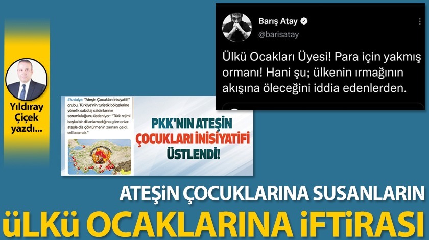 Bu PKK’lılar ve yandaşları gerçekten hem hain hem ahmak… Geçtiğimiz günlerde hem gazetelerinde hem televizyonlarında hem de yandaşlarının sosyal medyasında “Manavgat’ta ormanı yakan kundakçı Ülkü Ocakları üyesi çıktı” propagandası yaparak, büyük bir iftira kampanyası başlattılar. Hain olmasına hainler, şerefsiz olmasına şerefsizler ama ahmaklıkları da zirve yapmış durumdadır. Terör örgütü PKK’nın şeytandan peydahlanmış “Ateşin Çocukları” Türkiye genelindeki tüm yangınları yazılı açıklama yaparak üstlenmedi mi?