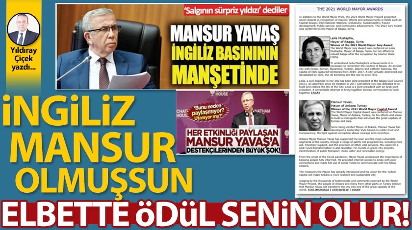 Ankara’ya kar yağdıktan sonra yollarda yaşanan acizlikler ve yağmurla oluşan sel sonrası yönetim rezaletleri, çöp toplama rezaletleri, çeşmelerden âdeta çamur akması, yandaş partilere ihale kıyakları, zimmetine para geçirip cezaevine giren bürokratlar, belediyenin resmi arabasında uyuşturucu yakalatan şefler, Halk TV gibi Türk-İslam düşmanı yayın organlarına yemek faturası adı altında ödemeler, park ve bahçelerin bakımındaki acizlikler, ihale usulsüzlükleri, seçim öncesi vadedilen sözlerin tutulmaması, “yapacağız” denilen projelerin iki yıl geçmesine rağmen sadece söz olarak kalması ortada iken geçtiğimiz gün Mansur Yavaş’ın “2021 Dünya Belediye Başkanı Başkent Ödülü” kazandığını servis ettiler. Ama ödülü verme gerekçeleri de hep şişirme övgüler…