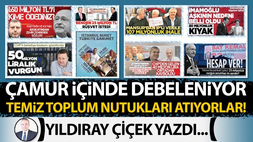 CHP olarak senin 2 İl Belediye Başkanın ve birçok ilçe belediye başkanın milyon TL’lik yolsuzluk ve rüşvetten görevden alınmış olacak, CHP ve Kemal Kılıçdaroğlu’nun eski avukatı Mustafa Kemal Çiçek 650 milyon kaynağı belirsiz paranın CHP tarafından televizyonlara, gazetelere, anket şirketlerine dağıtıldığını söyleyecek, Ekrem İmamoğlu Meral Akşener’in partisine 80 milyon TL hibe ettiğine herkes susacak, Mansur Yavaş İP milletvekiline 107 milyon TL ihale verecek, ABB içinde vurgun çetesi eski CHP milletvekili Sinan Aygün’den 25 milyon TL rüşvet isteyecek, Ekrem İmamoğlu’nun sözcüsü bir tatile 500-600 bin TL tatil parası ödeyecek, CHP’li gazeteci Can Ataklı’nın "Artı 1 TV'nin kurulduğu zamanla ilgili çok şaibe var. CHP'den toplanan bir 40 milyon lira var. Kayıp.” İddiası havada kalacak… Bu örneklerde görüldüğü gibi Ankara ve İstanbul başta olmak üzere CHP’li Belediyelerde ihaleler üzerinden vurgun düzeni kurulmuş durumdadır. Şimdi böyle bir muhalefet özetine baktığımızda iktidar içinde yapılan yahut yapılacak yanlışlara karşı konuşabilecek siyasi ahlak ve karakter görebiliyor musunuz?