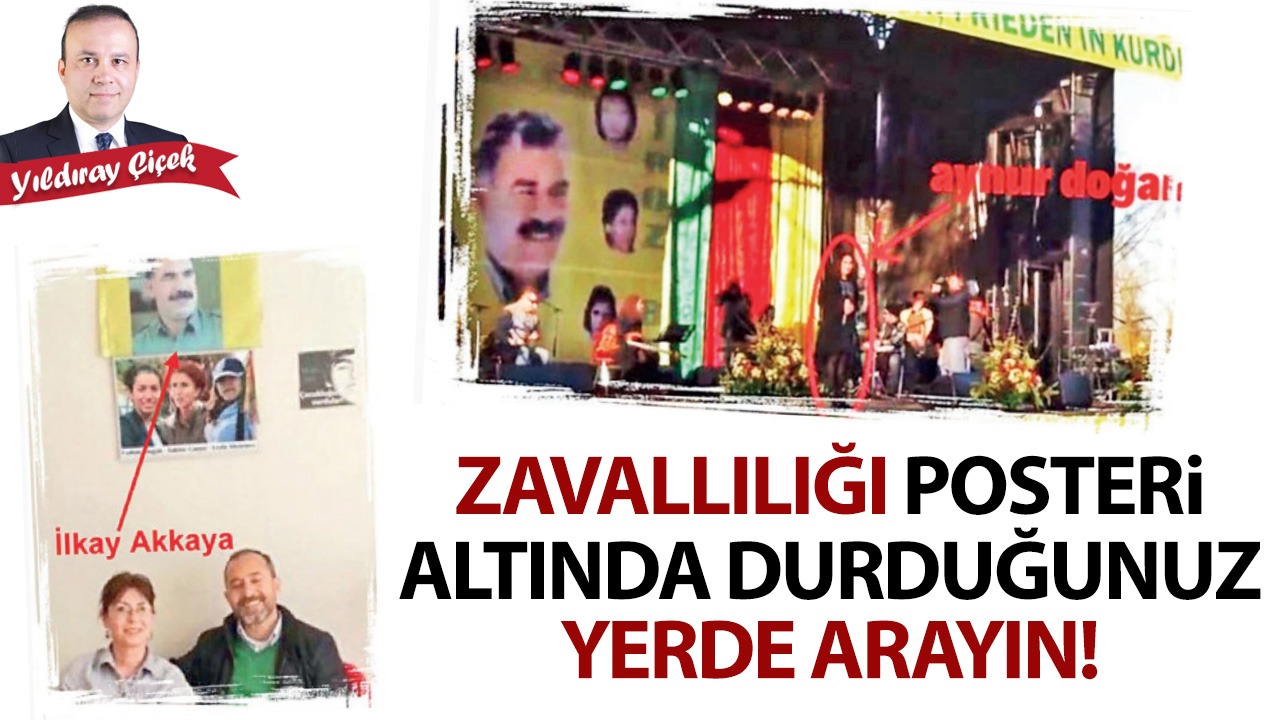 Tabii, İlkay Akkaya sadece bu çizgilerde yürümekle yetinen biri değil. Teröristbaşı Öcalan’ın posterleri önünde sırıtarak poz vermek, Suriye’de YPG saflarında öldürülen Aziz Güler’e sahip çıkmak gibi sicilinde terör örgütü sempatizanlığı olan birisidir.