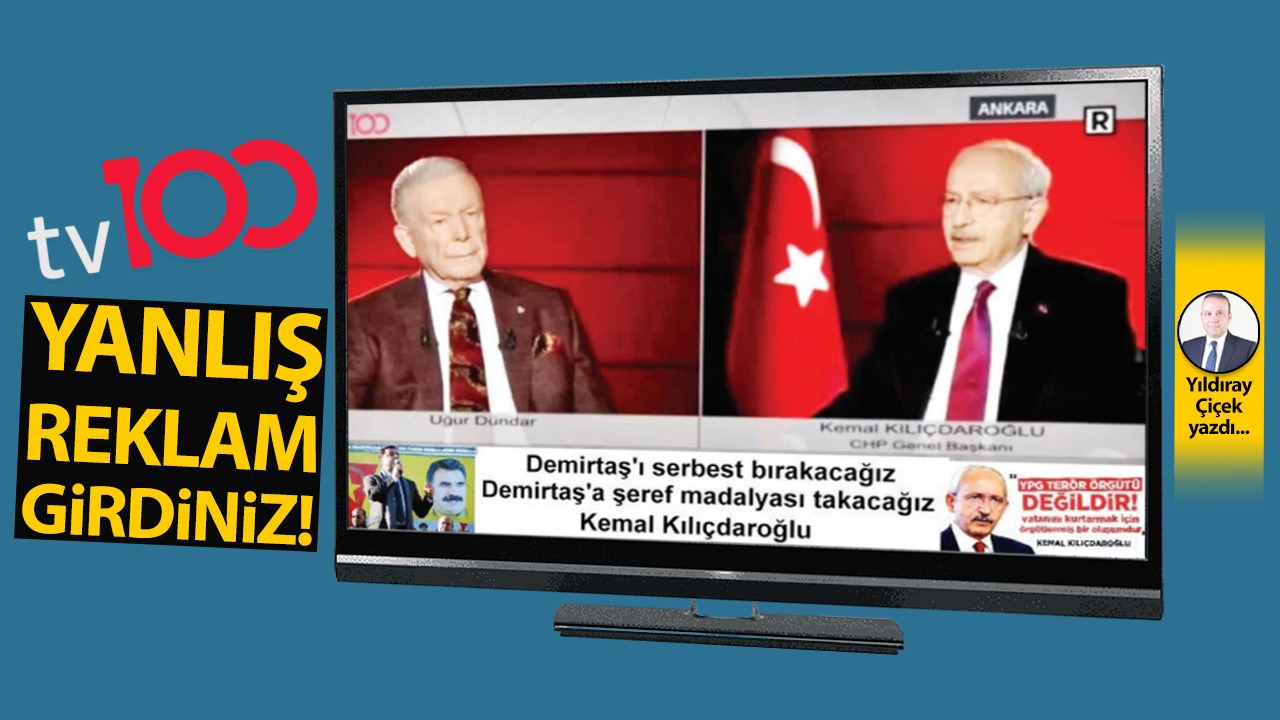 TV100 bunun özeleştirisi yapmalıdır. Kemal Kılıçdaroğlu gibi Türkiye Cumhuriyetini yıkmayı kafaya koymuş, tüm terör örgütleriyle sıcak ilişkisi olan, Atatürk’ün miraslarına ihanet etmek isteyen herkesi CHP’ye dolduran birinin ayağına gidip “Biz ettik, siz etmeyin” yakarışlarına gerek yoktu.