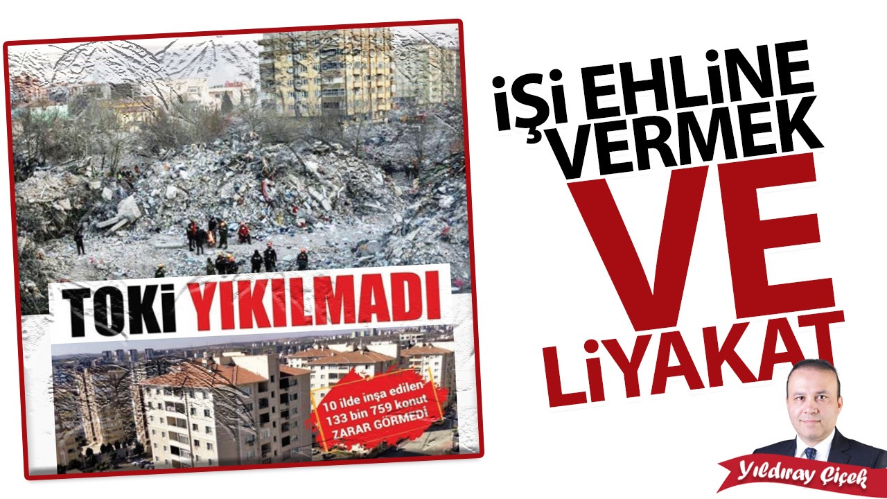 Dünyanın birçok ülkesinde olan deprem doğanın kaderi ama depreme karşı önlem almak asla kaderle açıklanamaz. Çünkü görüldüğü gibi İslam’ın temel ölçüsü işin ehline verilmesi ve liyakat üzerinedir. Deprem bölgesinde son yıllarda yapılan ama bir tanesi yıkılmayan TOKİ evleri, deprem bölgesinde bazı müteahhitlerin yapmış olduğu binaların yıkılmaması bir ölçü olmalı ve bundan sonra bu ölçüler ışığında şehirler yeniden imar edilmelidir. İşi ehline vermek ve liyakat tek ölçü olmalıdır.