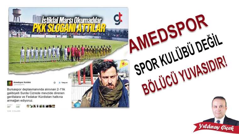 Amedspor’un terör örgütü PKK ile olan ilişkileri, stadyumunda bölücü unsurları meşrulaştırma çabaları elbette kimsenin gözünden kaçan bir durum değildir. Geçtiğimiz yıllarda Diyarbakır’da oynan maçta Amedsporlu futbolcuların Bursasporlu futbolculara jiletli saldırıları, kazandıkları maçları PKK’ya ithaf eden sosyal medya paylaşımları, bazı futbolcularının alenen terör örgütü PKK’ya destek veren davranışları ve pozları, meselenin TFF’nin sorumluluğu yanında yargının da bir meselesi hâline gelmiştir. Amedspor bölücü tahriklerle sürekli şiddeti körüklemektedir.