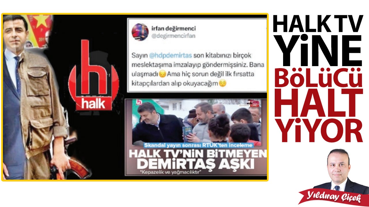 Terör örgütü PKK’nın bölücü televizyon kanallarının misyonu neyse Türkiye’deki Halk TV’nin misyonu da odur. Nerede terörist varsa sahip çıkarlar ve her yerde Türkiye’nin milli davasının karşısında yer alırlar. Çünkü CHP’nin televizyon kanalı oldukları için bu çizgiye hizmet etmeleri çok doğaldır. Bu televizyon kanalının kırmızı çizgisi terör örgütü PKK’nın siyasi uzantısı HDP’ye ve PKK’nın tasmalısı terörist Demirtaş’a sahip çıkmaktır. Bu konuda asla taviz vermezler. Şüpheye düşürecek bir tane eylem ve söylem içine girmezler. Bu kırmızı çizgilerini bir aşk, bir sevda gibi korurlar.