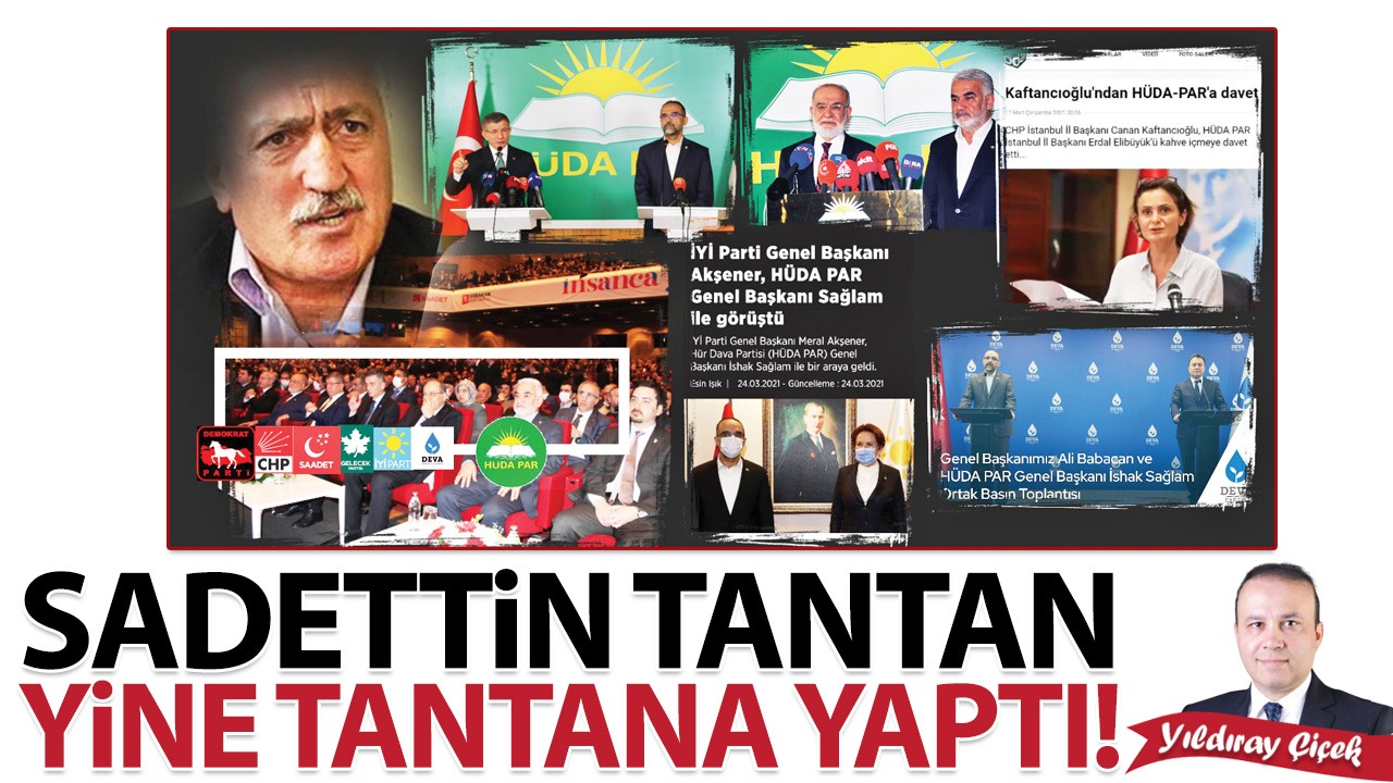 Tantanacı Tantan, unutmadan Cumhur İttifakı’na destek veren HÜDA-PAR ile senin destek olmak için parçalandığın 6’lı masadaki tüm partiler görüşmüş. Hepsinin çok samimi pozları olmuş. Hatta Saadet Partisi’nin geçtiğimiz yıl düzenlediği “Erbakan’ı Anma Toplantısına” HÜDA-PAR Genel Başkanı Zekeriya Yapıcıoğlu da konuşmacı olarak katılmış. Kemal Kılıçdaroğlu, Temel Karamollaoğlu, Ahmet Davutoğlu, Gültekin Uysal, DEVA Partisi Genel Başkan Yardımcısı Medeni Yılmaz, İYİ Parti Mali İşler Başkanı Ümit Dikbayır HÜDA-PAR Genel Başkanı Zekeriya Yapıcıoğlu’nu alkışlamaktan imtina etmemişti. O gün de sanırım bu programı Halk TV canlı yayınlamıştı. Aynı gün Halk TV’ye çıkıp Hizbullah tantanaları yapmış mıydın tantanacı Sadettin?