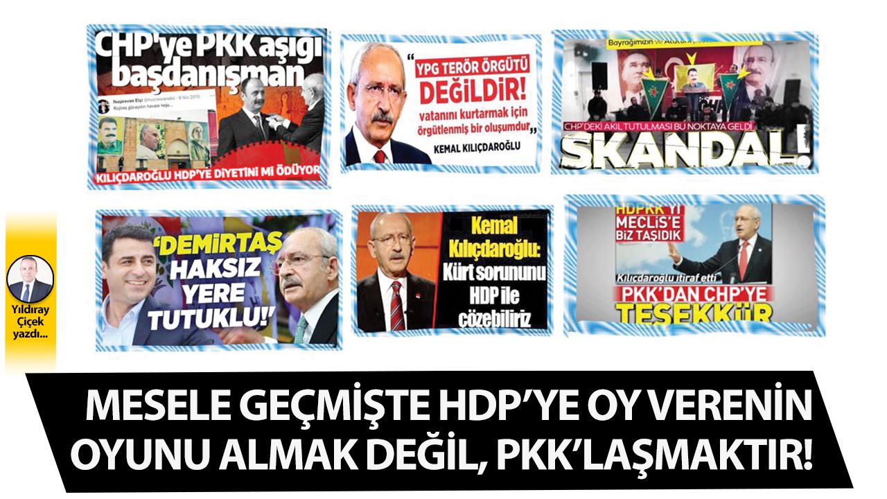 Terör örgütü PKK’nın siyasi uzantısı HDP’nin tuzağına düşmüş her vatandaşı kurtarmak sağduyulu herkesin görevidir. HDP’ye oy veren insanları aydınlatarak, PKK’nın ülkeye yaptığı kötülükleri göstererek onların oyunu almak kimseyi rahatsız etmez. Ama HDP’nin oyunu almak isteyen partilerin PKK’laşması, onların huyundan, suyundan gitmesi ülkenin meselesidir. Mesela CHP gibi… 2015 yılından itibaren CHP ve HDP arasında fark gören var mı?