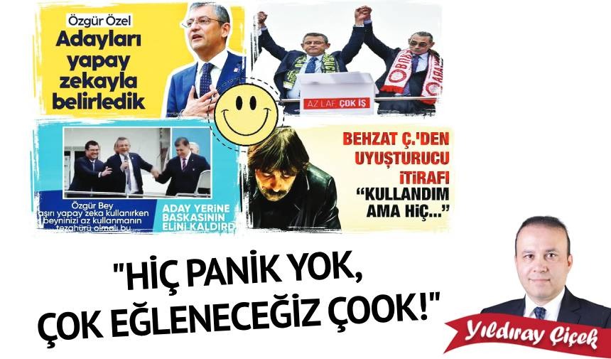Özgür Özel madem filmlerdeki rollere kendini çok kaptırıyor. CHP’nin hali için biz de Düğün Dernek filminden "Hiç panik yok, çok eğleneceğiz çook!" repliğini halk için sunalım… Özgür Özel ve kadrosu, bizleri gerçekten çoook eğlendirecek çoookk…