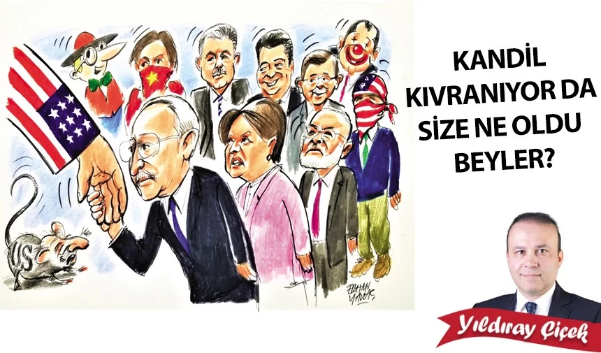 Bu ismini saydığım siyasilerin hepsinin toplanma merkezi CHP olduğuna göre, bunlardan hangisi CHP’nin PKK, Kandil, HDP, Yeşil Sol, DEM ilişkisine, iş birliğine, ittifakına bir tepki gösterdi? Hiçbiri göstermediği gibi hepsi de CHP’li belediyelerde menfaatlerine baktı. Cumhurbaşkanlığı seçimlerinde de hepsi menfaat hayalinde koşturdular. Öyle günler oldu ki, bu ismini saydığım birçok kişi Türk devletinin terörle mücadele operasyonlarında adeta PKK adına barikat olmaya çalışmıştı.