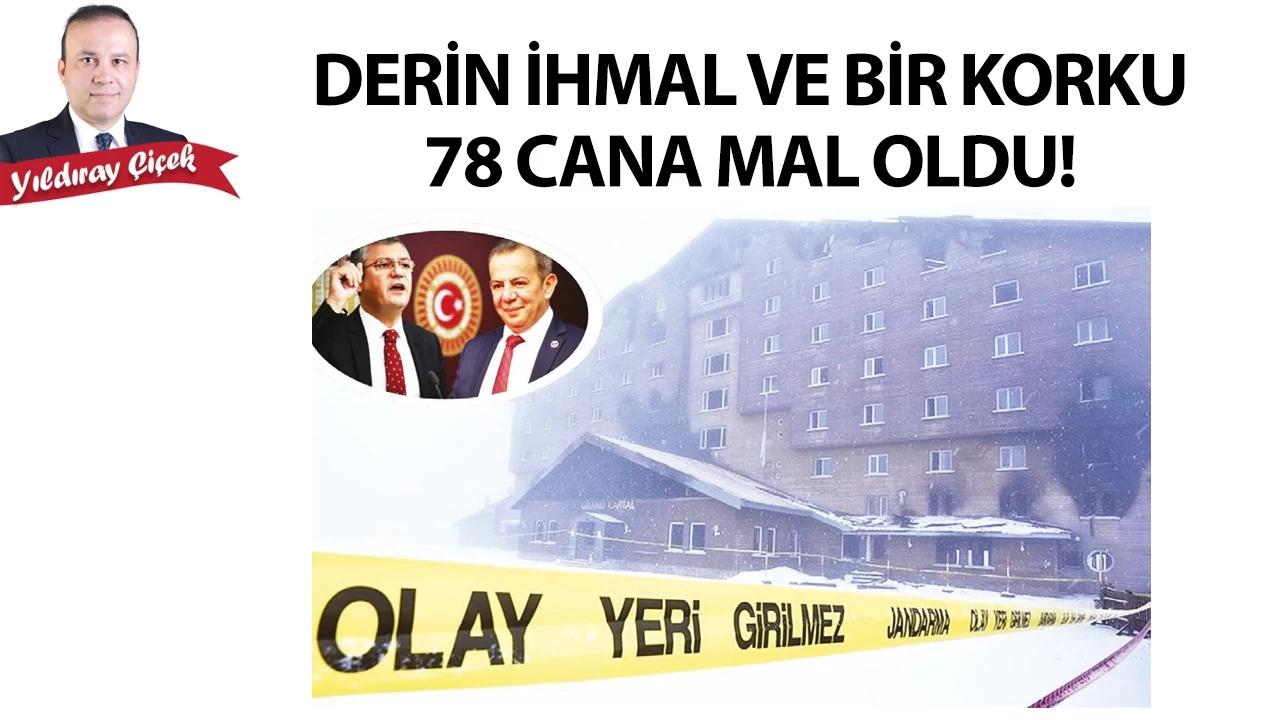 CHP’nin emanetçi genel başkanı Özgür Özel dün yaptığı konuşmada "Üç hafta oldu. 78 can gitti orada. İçişleri Bakanı, bir hafta, en geç 10 günde bütün sorumluların belirleneceğini, kimsenin sorumluluktan kaçamayacağını, üstlerindeki sorumluluğu yıkamayacağının sözünü veriyordu. 21 gün geçti, ağzını bu konuda açmadı." demiştir. Tamam, Turizm ve Kültür Bakanı üzerine düşen tüm sorumlulukları yerine getirsin, atacağı adımları atsın ve vermesi gereken hesap varsa versin. Bunda bir sıkıntı yok...