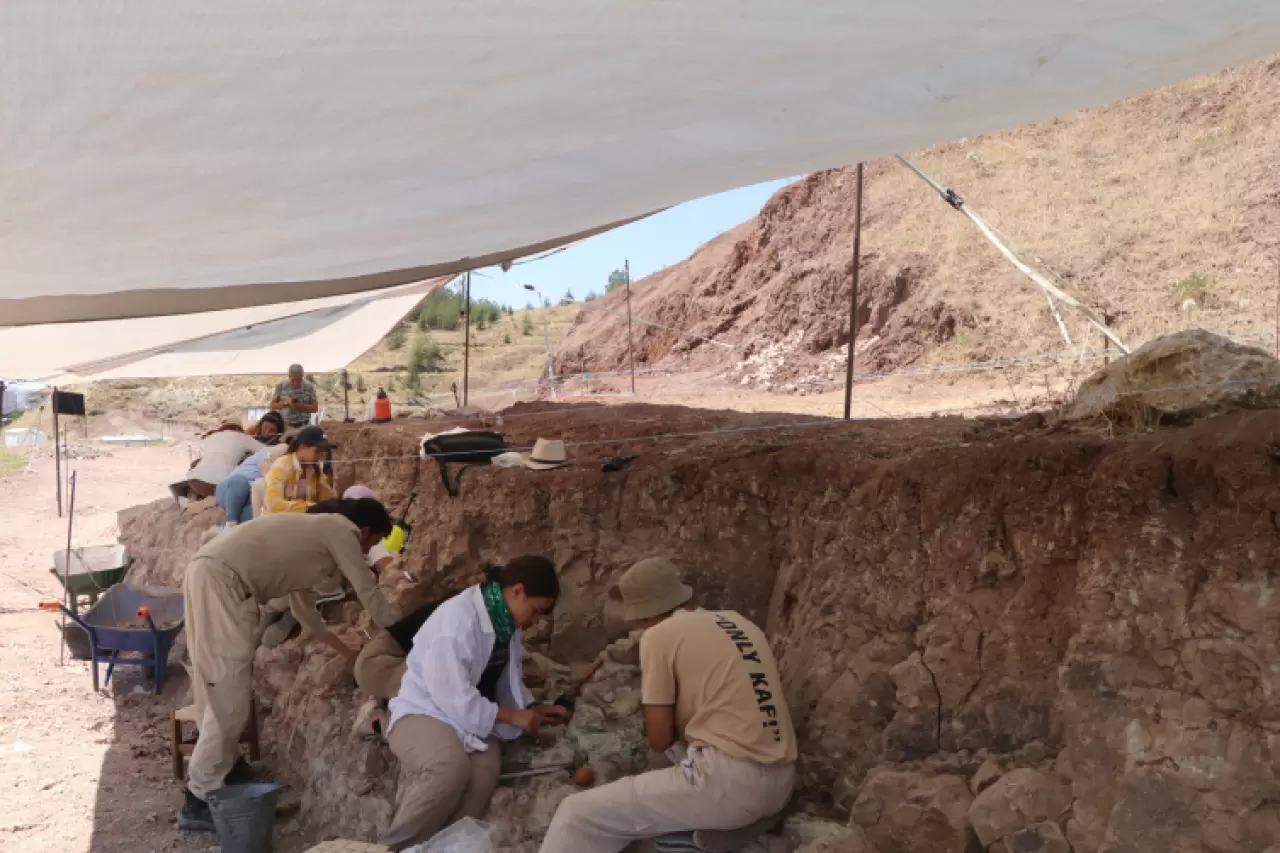 Çalışmaların büyük titizlikle yürütüldüğünü vurgulayan Erol, "Geçen haftalarda 40 derece civarında, bu hafta yine çok yüksek derecelerde alanda çalışmalarımız devam ediyor. Üniversite birinci sınıftan başlayarak yüksek lisans, doktora öğrencileri, doktorasını bitiren hocalarımızla hep birlikte çalışmalarımıza devam ediyoruz. Sabırla, itinayla, hiçbir şekilde gocunmadan, ince detaylarla, dişçi aletleriyle fosiller tek tek çıkarılıyor." dedi.