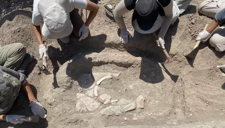Samsun Ondokuz Mayıs Üniversitesi Arkeoloji Bölümü Doktora öğrencisi ve Kazı Başkan Yardımcısı Tuğçe Kocael, şu anda Smintheion/Gülpınar kazısında bulunduklarını belirterek, “Geçen yıl Nekropol alanında çalışmalarımız başlamıştı. Jeofizik taramaları sonrası elde ettiğimiz veriler doğrultusunda çalışmalarımıza devam ediyoruz. Açtığımız açmalarda, bulduğumuz buluntular gerekli tasnif, belgeleme ve çizim çalışmalarından geçtikten sonra malzeme deposuna kaldırılıp, yıl boyu içerisinde çalışmalarımıza devam ediyoruz. Şuanda bulunduğumuz Nekropol alanında duvar diplerini kazıyoruz. Bu çalışmalar sırasında duvar dibinde bir kiremit mezar bulduk. Genel olarak bu Nekropol alanındaki malzemelere baktığımızda M.S. 1 ila en geç 5'inci yüzyıla kadar malzemeler göstermekte. Çıkan malzemelere baktığımızda daha çok profil veren, seramik parçalarına rastlamaktayız. Mezarlar açısından değerlendirdiğimiz takdir de ise basit gömü şeklinde kiremit mezarlara rastlıyoruz. Bulduğumuz bu mezarlarda bir ölü hediyesine rastlayamadık. Üzerinde bir kiremit mezar var ancak yığılmış olan topraktan, baskısından kiremit parça parça şeklinde aşamalı olarak çıkarıyoruz. 2023 yılında bu alanda bulunan kiremit mezarlar açısından da bir değerlendirecek olursak, yoğun tahrip sonucu iskeletlere rastlamıştık. Bunun içerisinde çocuk, anne ve baba şeklinde bir aile olduğunu düşündüğümüz bir grubumuz vardı. Bu sene bulduğumuz iki kiremit mezarından biri kadın, birisi de çocuk mezar, kiremit mezar tespit etmiş olduk. Şu anda çıkan mezarın ne olduğunu bilmiyoruz. Gerekli tasniflerimiz var. Öncelikle düzenli olarak etrafın açılması, fotoğraflama, gerekli çizimler, belgeleme daha sonra kiremitlerin aşamalı olarak düzenli bir şekilde kaldırılması, onların gerekli bir şekilde tasnifleri, çizimleri, ölçüleriyle aşama aşama gideceğiz. Çok uzun süren bir çalışma diyebiliriz” diye konuştu.