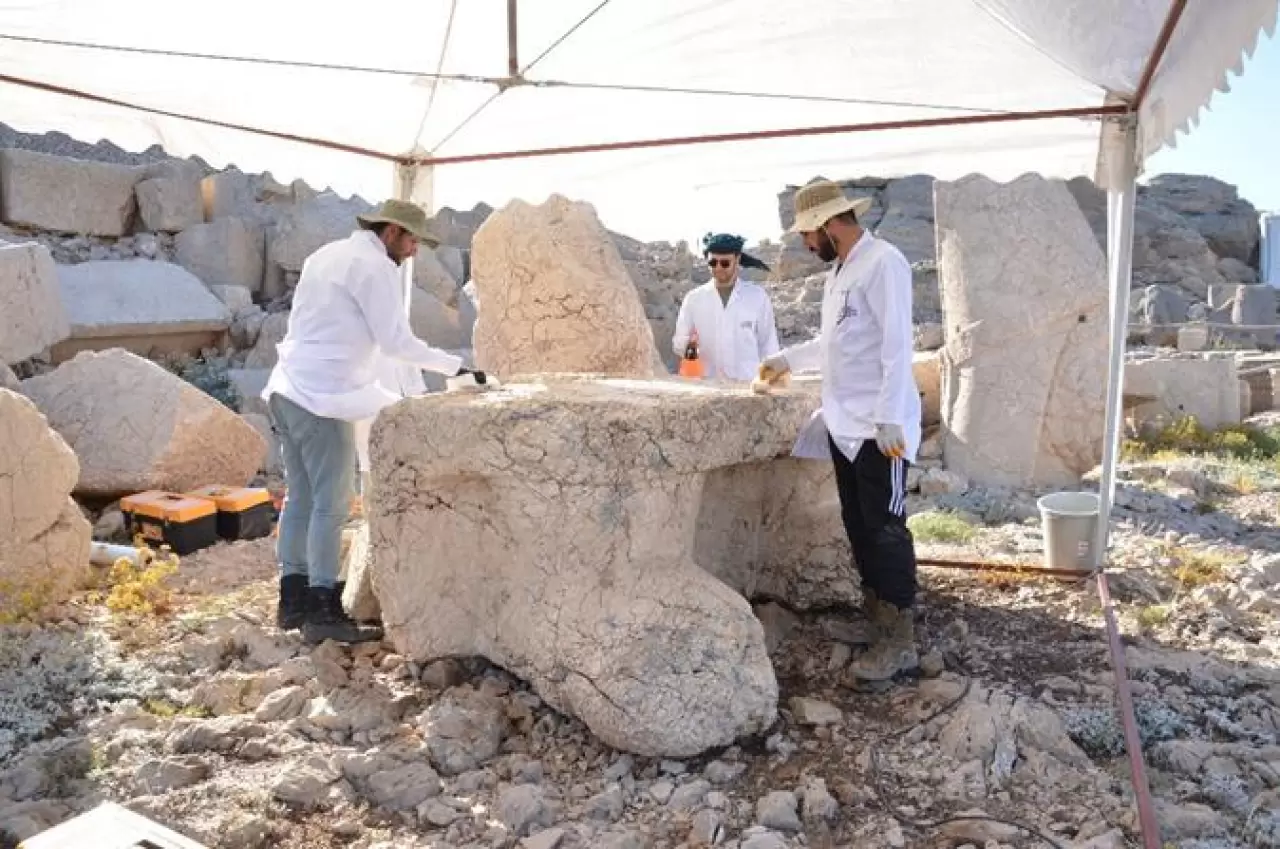 Adıyaman Müze Müdürlüğünden bir uzman ile altı restoratörün katıldığı çalışmalarda, Antiochos ve Kartal başları ile Batı terasındaki iki kumtaşı rölyef üzerinde kapsamlı müdahaleler gerçekleştirildi.