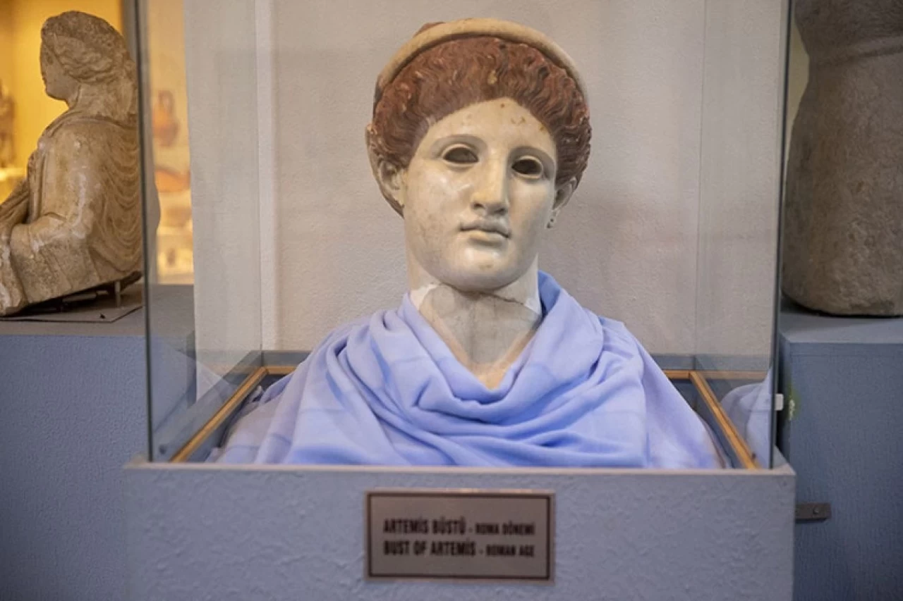 Akpınar Mahallesi'nde 1970'li yıllarda inşaat çalışması esnasında bulunan ve çalışmalarla Yunan tanrıçası Artemis'e ait olduğu belirlenen yaklaşık 2 bin yıllık büst, üzerindeki orijinal boyasıyla bugüne kadar ulaşmasıyla dikkati çekiyor.