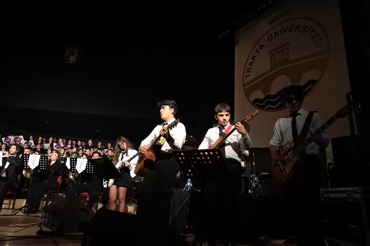 Trakya Üniversitesi Balkan Kongre Merkezi'nde düzenlenen konserin ilk bölümünde Edirne Süleyman Demirel Fen Lisesinin öğrenci rock grupları sahneye çıktı.