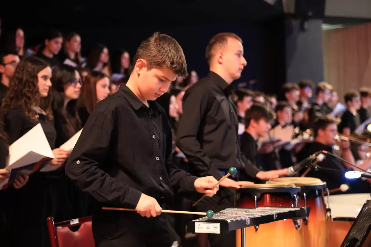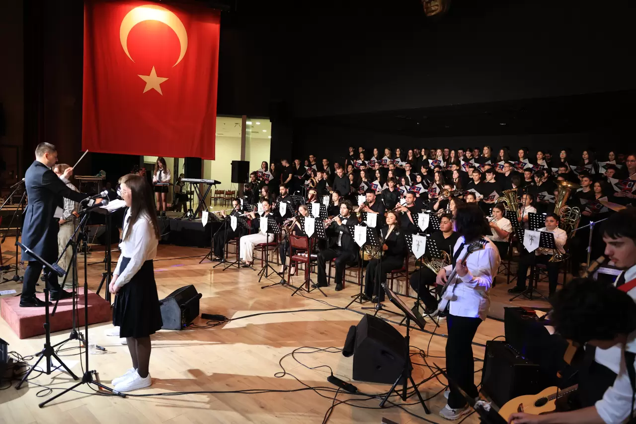 Konser sonunda salonu dolduran izleyiciler öğrencileri ayakta alkışladı.