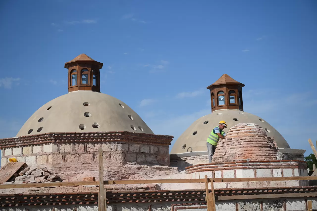 Erken dönem Osmanlı mimarisinin en önemli hamamlarından olan yapının dış cephe, çatı ve iç kısmındaki restorasyon çalışmaları eş zamanlı devam ediyor.