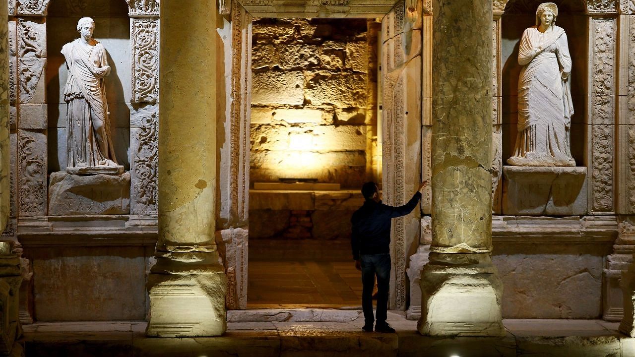 Dünyanın farklı noktalarından her yıl yüz binlerce ziyaretçi çeken yaklaşık 2 bin 300 yıllık Efes Antik Kenti'nin sahip olduğu eşsiz güzellikler, Kültür ve Turizm Bakanlığının "Gece müzeciliği" uygulamasıyla 9 Nisan'dan itibaren gün batımından sonra da ziyaret edilebiliyor.