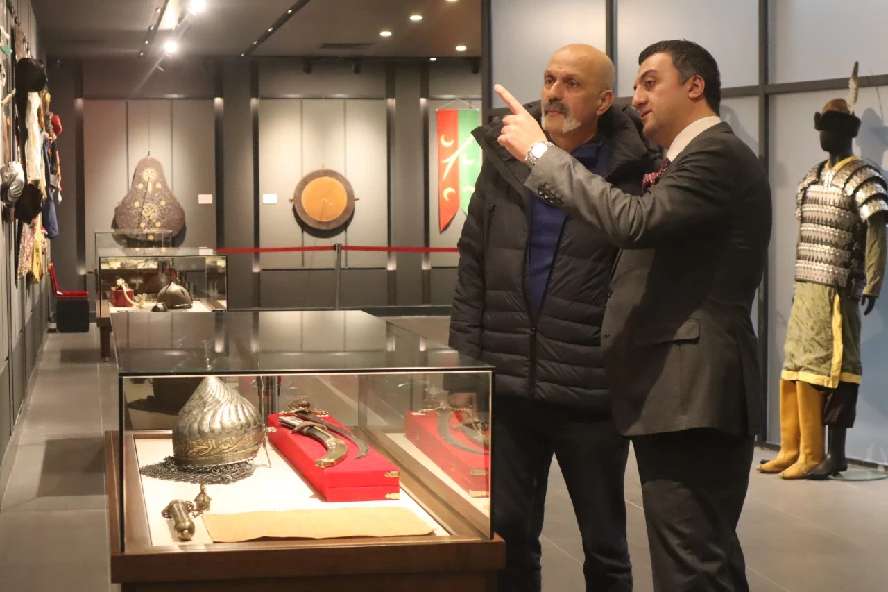 Sergiyle ilgili bilgilendirmede bulunan Türk Dünyası Vakfı Proje Koordinatörü Mustafa Çelik, “Özel izinle getirilen eserlerle açılan ‘Türk Savaş Sanatı' adını verdiğimiz sergimiz, 27 Ocak 2025 tarihinde açılışını gerçekleştirdik. Tabii 27 Ocak tarihi bizim için özel bir tarih. Sergimizin çıkış noktası, çıkış nedeni aslında 27 Ocak 1299 tarihinde Karacahisar Kalesi'nde Osman Gazi adına okunan ilk hutbe ile aslında Osmanlı Devleti'nin kuruluş günü olarak kabul edilen gün. Biz bunun yıldönümünde böyle bir etkinlik düzenlemek istedik. Bu hutbenin ilk orijinal metni de burada şu an sergilenmektedir” dedi.