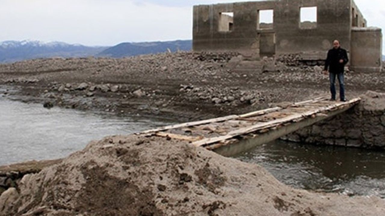 Sivas'ın Suşehri ilçesinde Kılıçkaya Barajı'nın sularının çekilmesiyle Fatih Sultan Mehmet tarafından yaptırıldığı iddia edilen cami gün yüzüne çıktı.