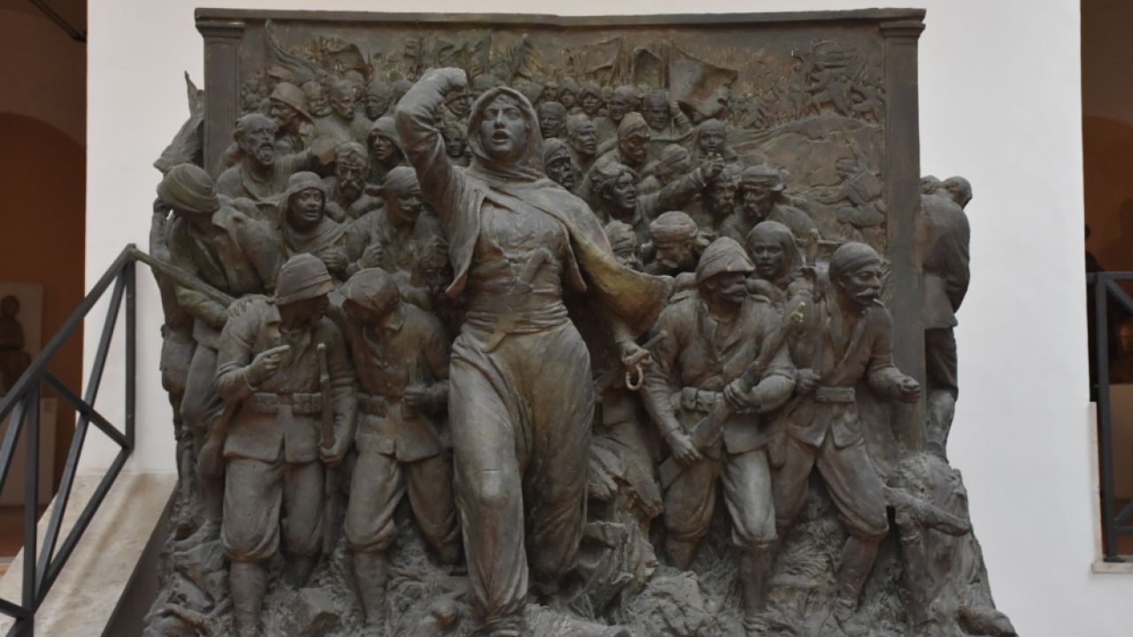 Öğrenciler, Sakarya Savaşı rölyefi önünde Türk bayrakları açarak, Müze Müdürü Scicchitano ve Kültür ve Tanıtma Müşaviri Haluk Söner ile de fotoğraf çektirdi.