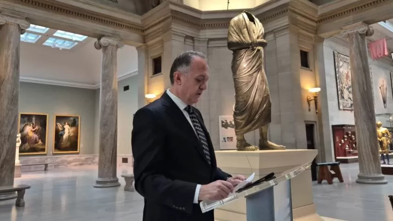Türkiye'den kaçak kazılarla 1960'lı yıllarda yurt dışına kaçırılan Roma İmparatoru Marcus Aurelius'un bronz heykeli, ABD'deki Cleveland Sanat Müzesi'nde düzenlenen törenle resmen Türkiye'ye iade edildi.