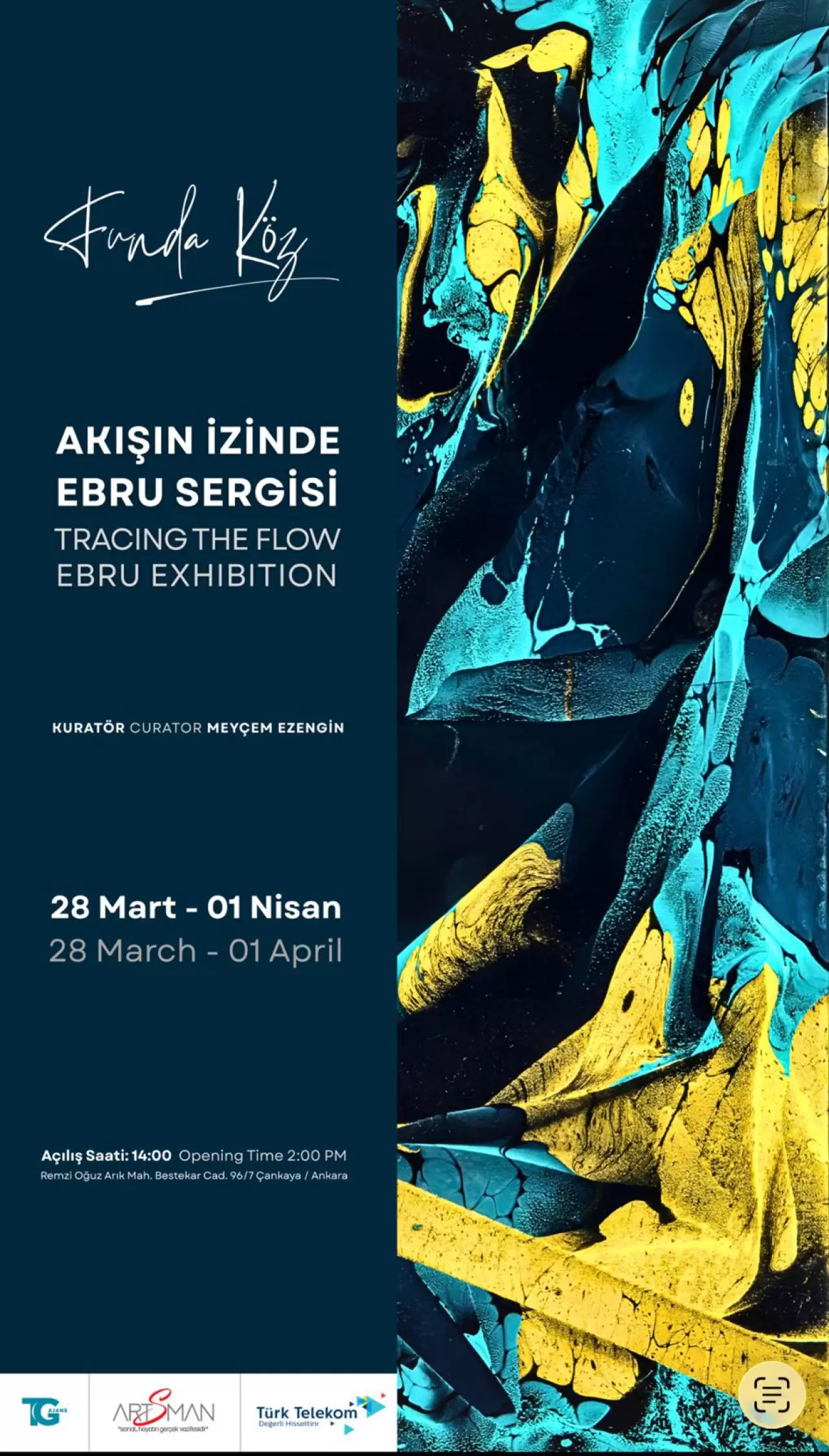 Sanatın suyla kurduğu kadim ve zarif ilişkinin en özel yansımalarından biri olan ebru sanatı, düzenlenen özel bir sergiyle sanatseverlerle buluşuyor. Küratör ve sanatçının ev sahipliğinde gerçekleşen açılışta konuklar eserlerle birebir temas kurarken, sergi süresince hem estetik hem de anlam katmanlarıyla zengin bir deneyim yaşamaları hedefleniyor. Sergi, Türk Telekom sponsorluğunda sanatseverleri ağırlıyor.