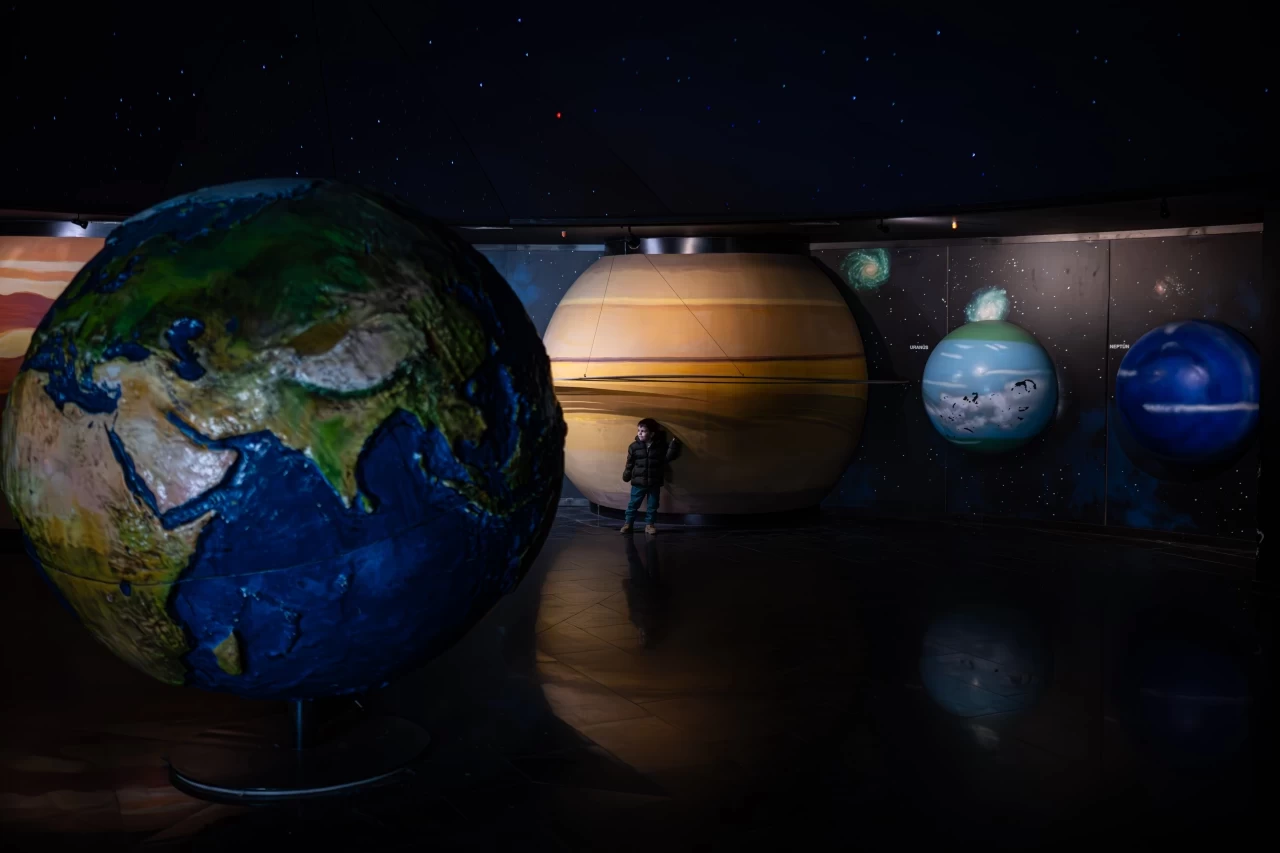 Müzenin giriş katında, ziyaretçiler güneş sistemi ve gezegenleri daha yakından tanıyabiliyor. Ayrıca, gök taşları ve ay taşları gibi uzaydan gelen örnekleri inceleme fırsatı bulan ziyaretçiler, uzaya dair meraklarını bu bölümde giderebiliyor.