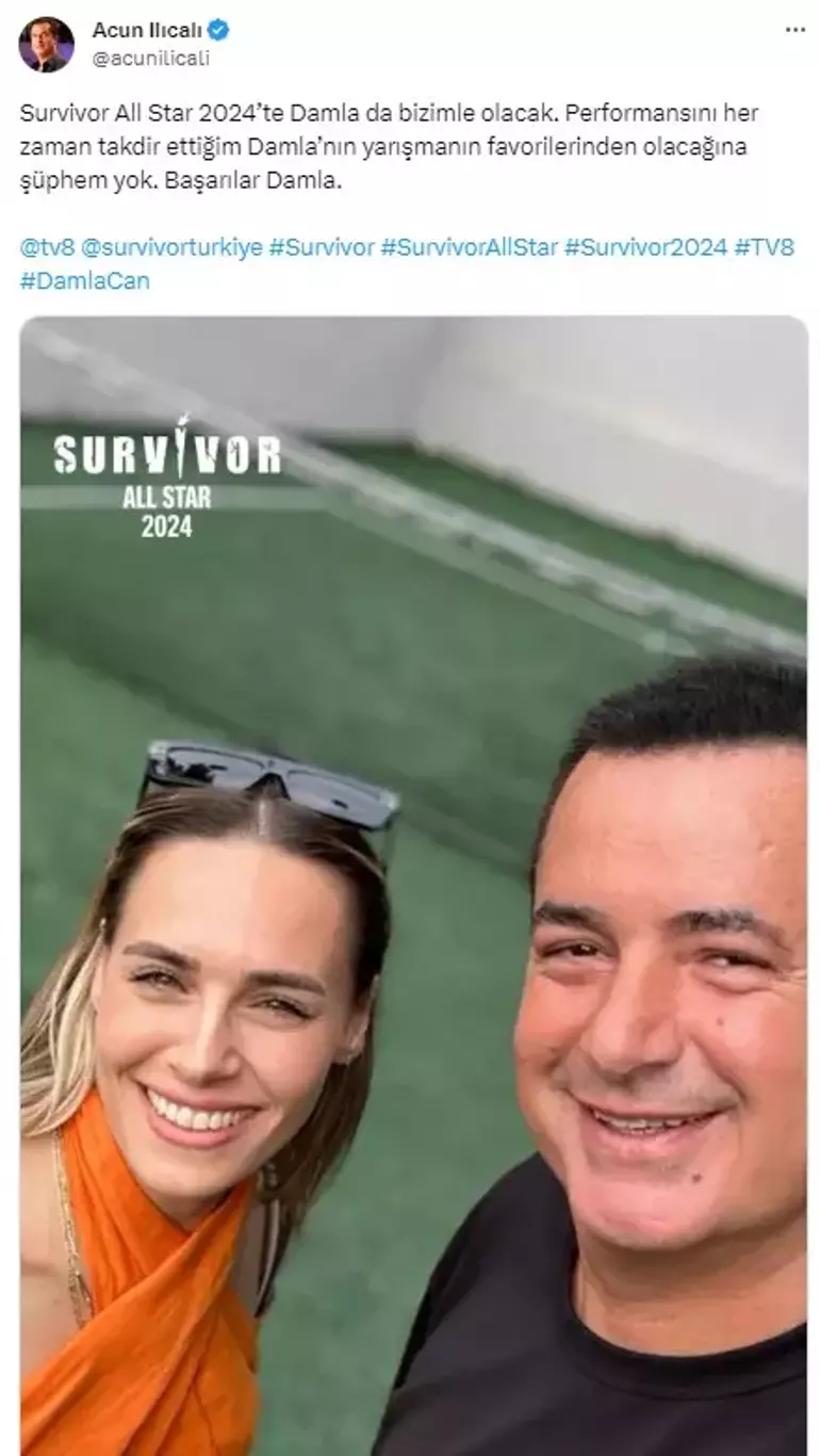 Yarışmaya katılacak dördüncü ismi açıklayan Ilıcalı, 'Survivor All Star 2024’te Damla da bizimle olacak. Performansını her zaman takdir ettiğim Damla’nın yarışmanın favorilerinden olacağına şüphem yok. Başarılar Damla.' mesajını paylaştı.