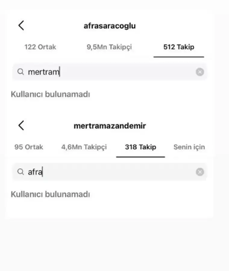 Mert Ramazan Demir ile Afra Saraçoğlu'nun Instagram'da birbirlerini takipten çıkması sosyal medya kullanıcılarının dikkatinden kaçmadı. Birçok sosyal medya kullanıcısı olayın fark edilmesinin ardından binlerce yorumda bulundu.