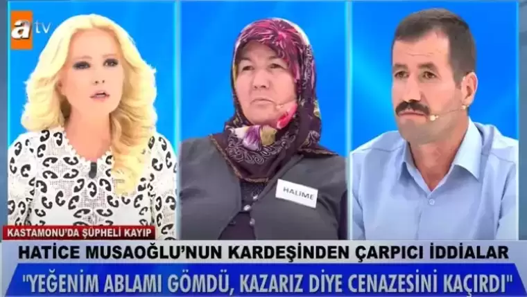 18 yıl önce Kastamonu'da kaybolan Hatice Musaoğlu'nu dosyası açıldı. Programa katılan Hatice Musaoğlu'nun kızı Melek, 0 yaşındaki 4 çocuk annesinin ortadan kaybolmasından oğlu Aydın'ın parmağı olduğu iddia etti.
