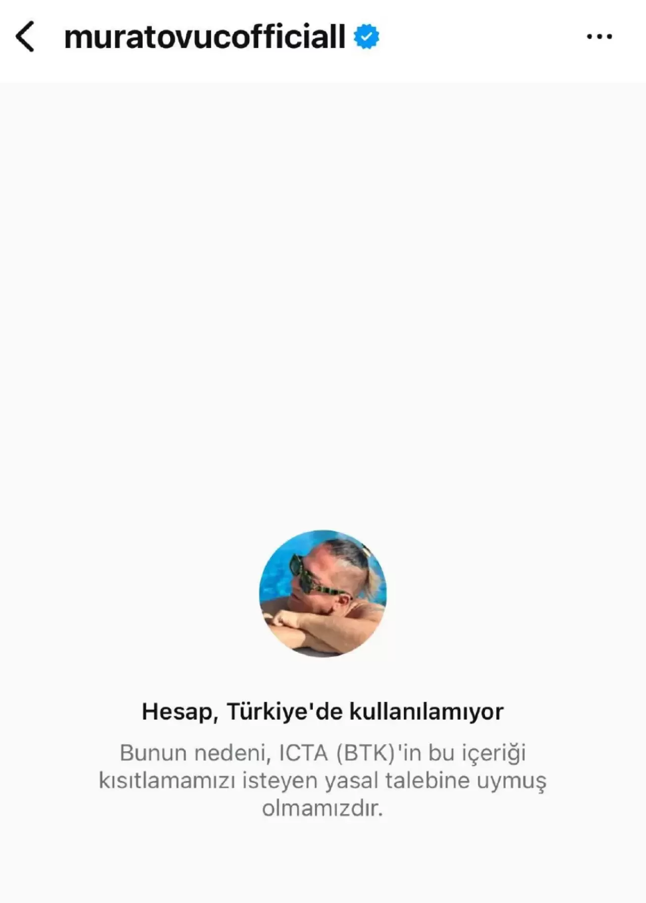 Övüç'ün 4 milyon takipçili hesabına girenler "Hesap, Türkiye'de kullanılamıyor" mesajıyla karşılaştı.