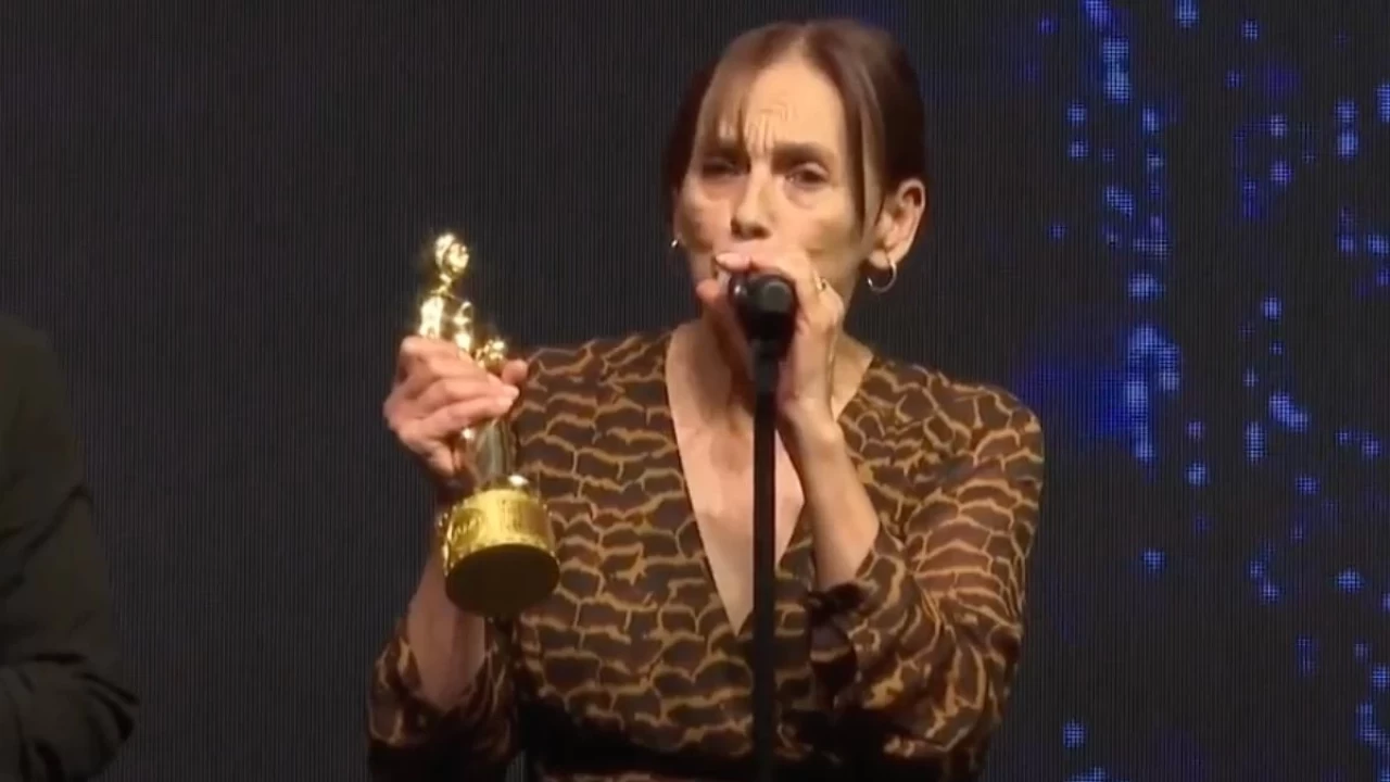 Oyuncu Nur Sürer'de ödül alırken yaptığı konuşmanın ardından, tepki çeken bir harekette bulundu.