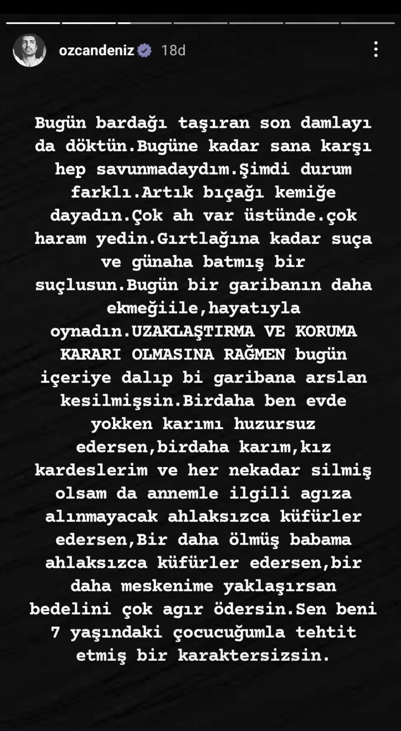 Özcan Deniz, yayımladığı beş sayfalık açıklamada, ailesiyle yaşadığı problemleri detaylandırdı. Özellikle abisi Ercan Deniz’in kendisine yönelik asılsız ithamlar ve baskılarla hayatını zorlaştırdığını öne süren Deniz, bu durumun artık psikolojik olarak yıpratıcı bir hale geldiğini ifade etti. Açıklamasında, “Ben bugüne kadar ailemi korumak için sustum ama artık yeter,” ifadelerine yer verdi.