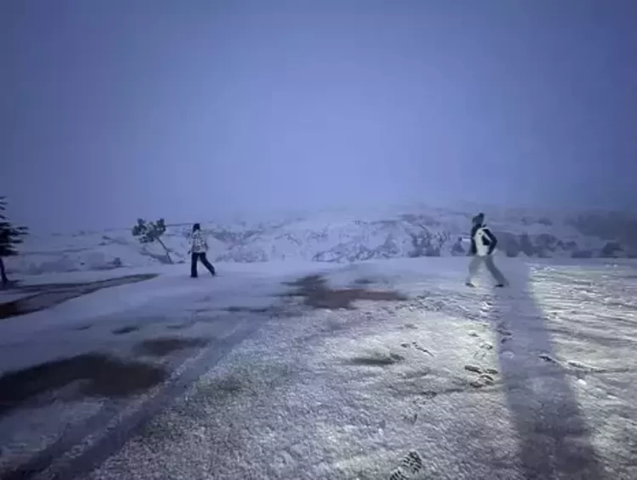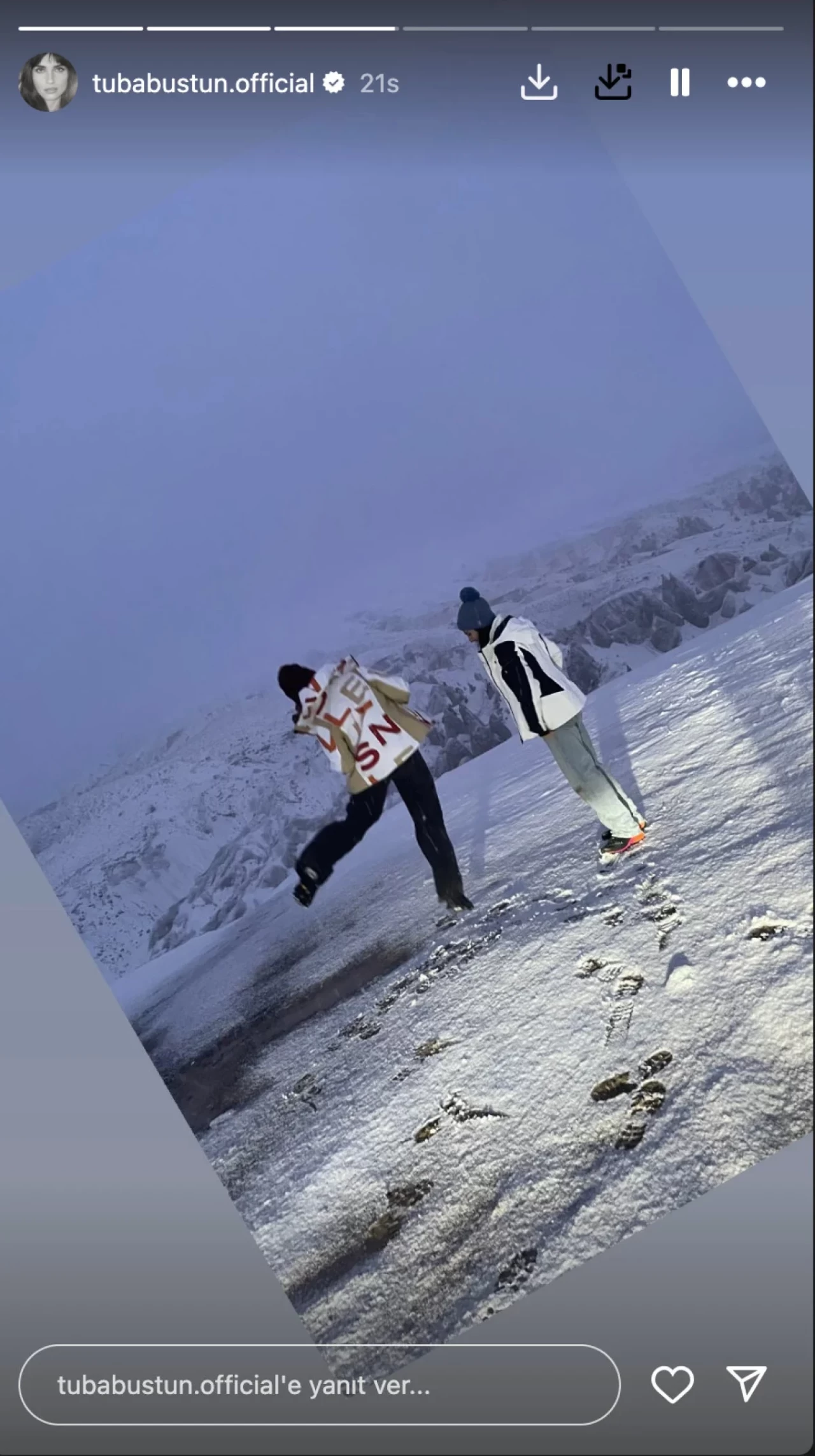 Büyüküstün, ardından konakladığı otelden lapa lapa yağan muhteşem kar manzarasını da takipçileriyle paylaştı.