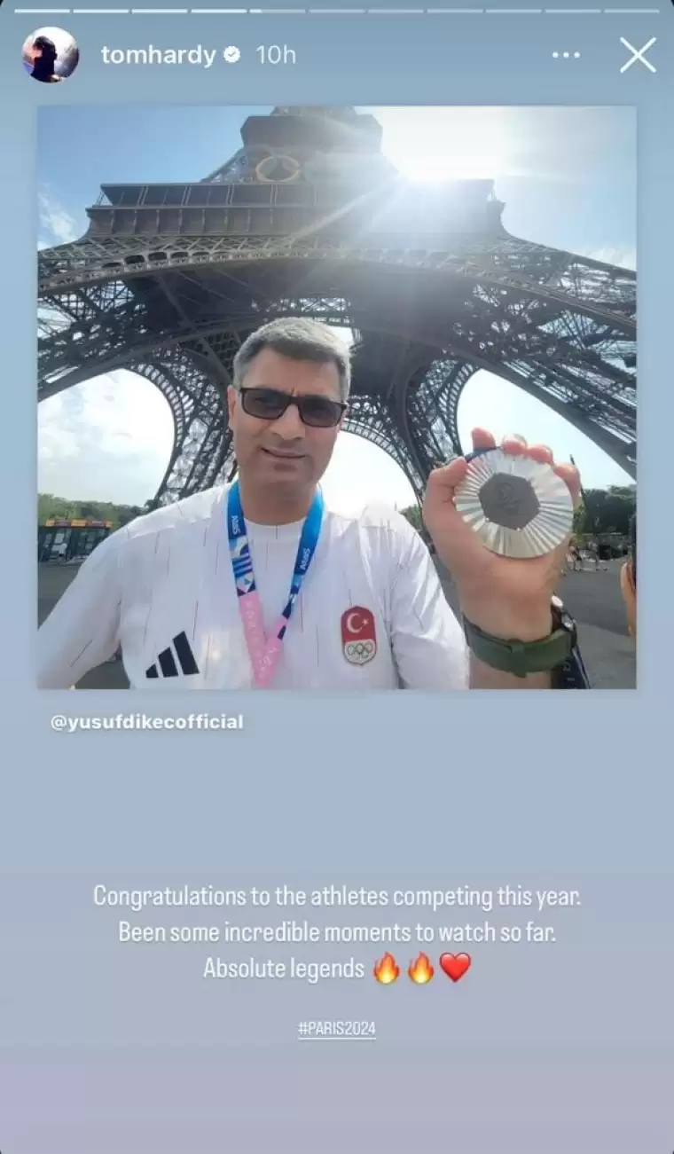 Son olarak dünyaca ünlü İngiliz oyuncu Tom Hardy, Yusuf Dikeç ile ilgili bir paylaşımda bulundu. Hardy, bir seri paylaşımda Paris 2024'te çeşitli kategorilerde altın madalya kazanan sporcuları tebrik etti. Ünlü oyuncu, gümüş madalya kazanmasına rağmen Dikeç'e de paylaşımlarında yer vermesi, milli sporcumuzun ne ölçüde etki bıraktığını gözler önüne seren bir diğer gösterge oldu.