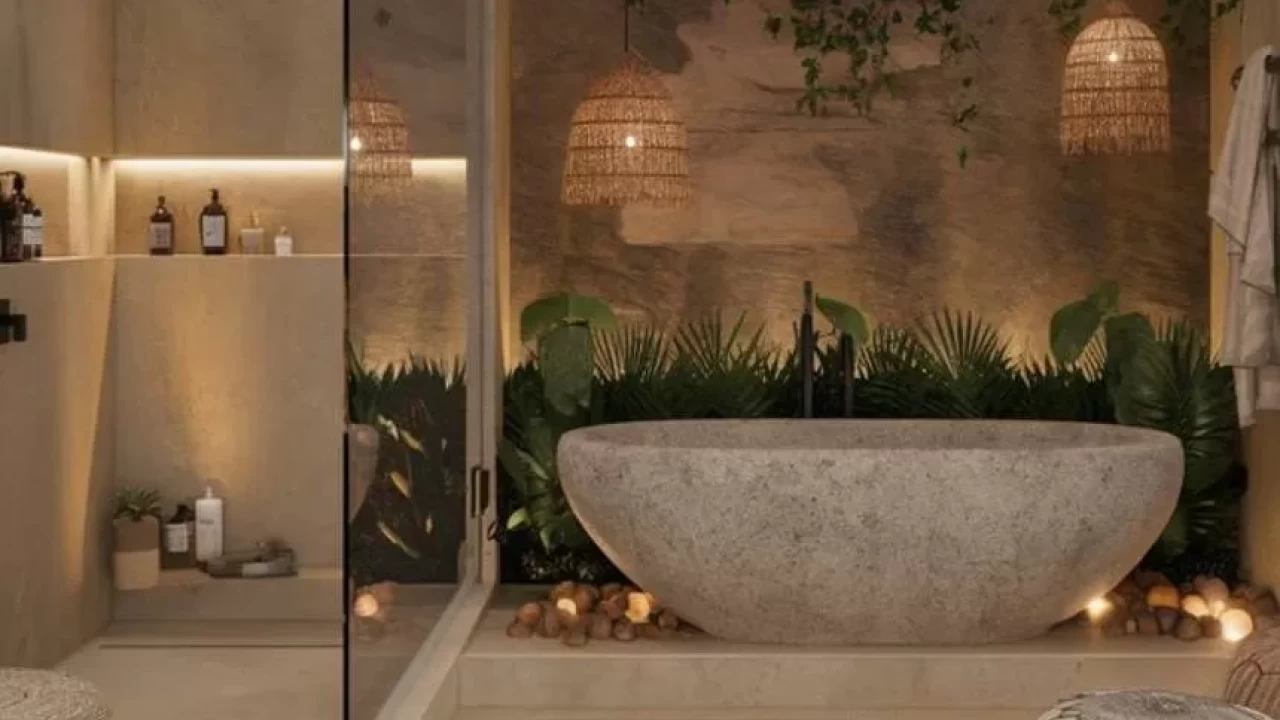 Neme dayanıklı salon yaprağı, sukulent ya da bambu gibi bitkilerle banyonuza doğal bir hava katabilirsiniz. Bitkiler stresi azaltır ve ortamı canlandırır.