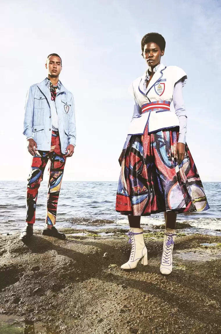 Haitili-İtalyan tasarımcı Stella Jean, Paris Olimpiyatları için Haiti Takımı’nın özel formalarını tasarladı. Forma, Paris’teki açılış töreninde 15 Haitili sporcuya giydirilecek. Jean’in tasarımları, Haiti’nin kültürel zenginliğini ve zanaatkârlığını vurgulamayı hedefliyor. Kadın versiyonunda, Haitili ressam Philippe Dodard’ın eseri “Passage”dan esinlenen formada, mavi pamuktan dokunan şambre gömlek ve Dodard’ın sanat eserlerini taşıyan tam bir etek bulunuyor. Üst kısımda ise geri dönüştürülmüş kumaştan yapılmış kolsuz bir ceket ve Haiti Olimpiyat amblemi yer alıyor. Erkek versiyonunda ise, Dodard’ın motifleriyle süslenmiş pantolonlar, Haiti gömleği bir saha ceketi ile kombinleniyor. Jean’in büyükbabasına saygı duruşu niteliğindeki bu ceket, çizgili bir gömlekle tamamlanacak. Jean, sporcuların “barışın taşıyıcıları” olarak nitelendirerek, yarışmanın ötesinde bir mesaj taşıdıklarını ifade etti.