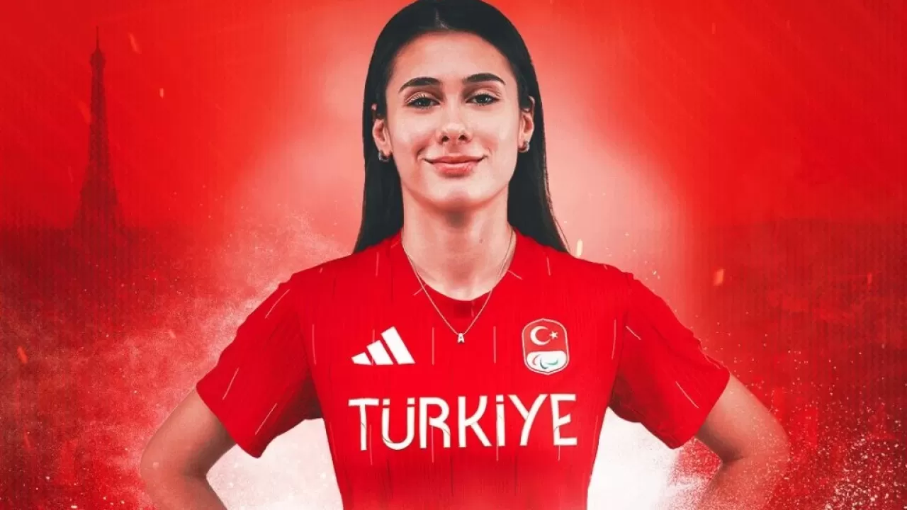 Müsabakadan sonra Aysel, sevincini Türk bayrağıyla Stade de France'da zafer pozu vererek kutladı.