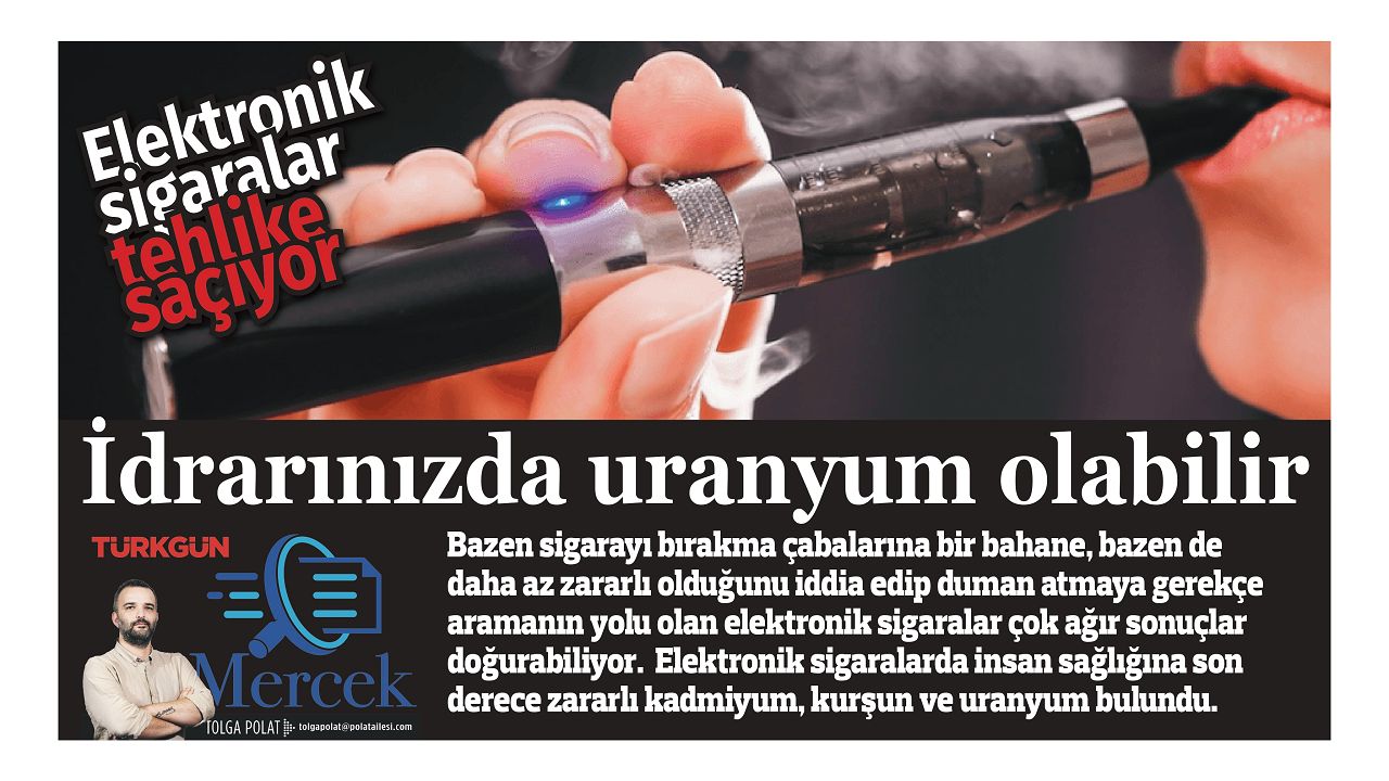 Elektronik sigaralarda yapılan analizler sonucu, aynı üründen kullanan 200 gençten alınan idrar örneklerinde, insan sağlığına son derece zararlı kadmiyum, kurşun ve uranyum bulundu.