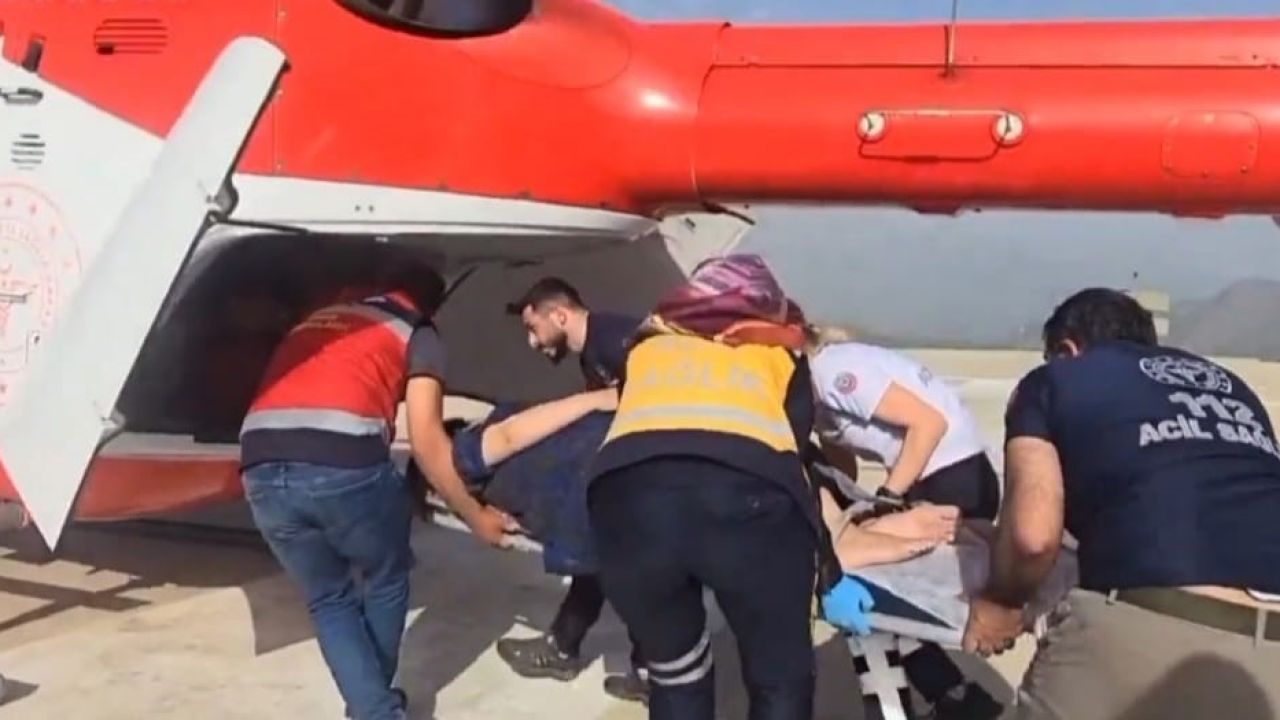 Hakkari’nin Irak sınırında bulunan Derecik ilçesinde gözlem altında bulunan hamile kadın için ambulans helikopter havalandı.
