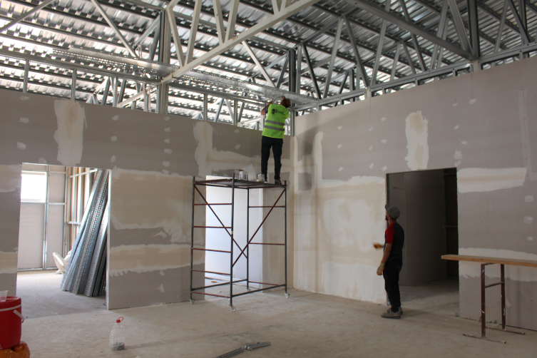 Cebike Mahallesi'nde 20 bini kapalı olmak üzere 90 bin metrekare alanda çok sayıda personelin 24 saat esasına göre görev yaptığı hastane inşaatında çalışmalar sürüyor.