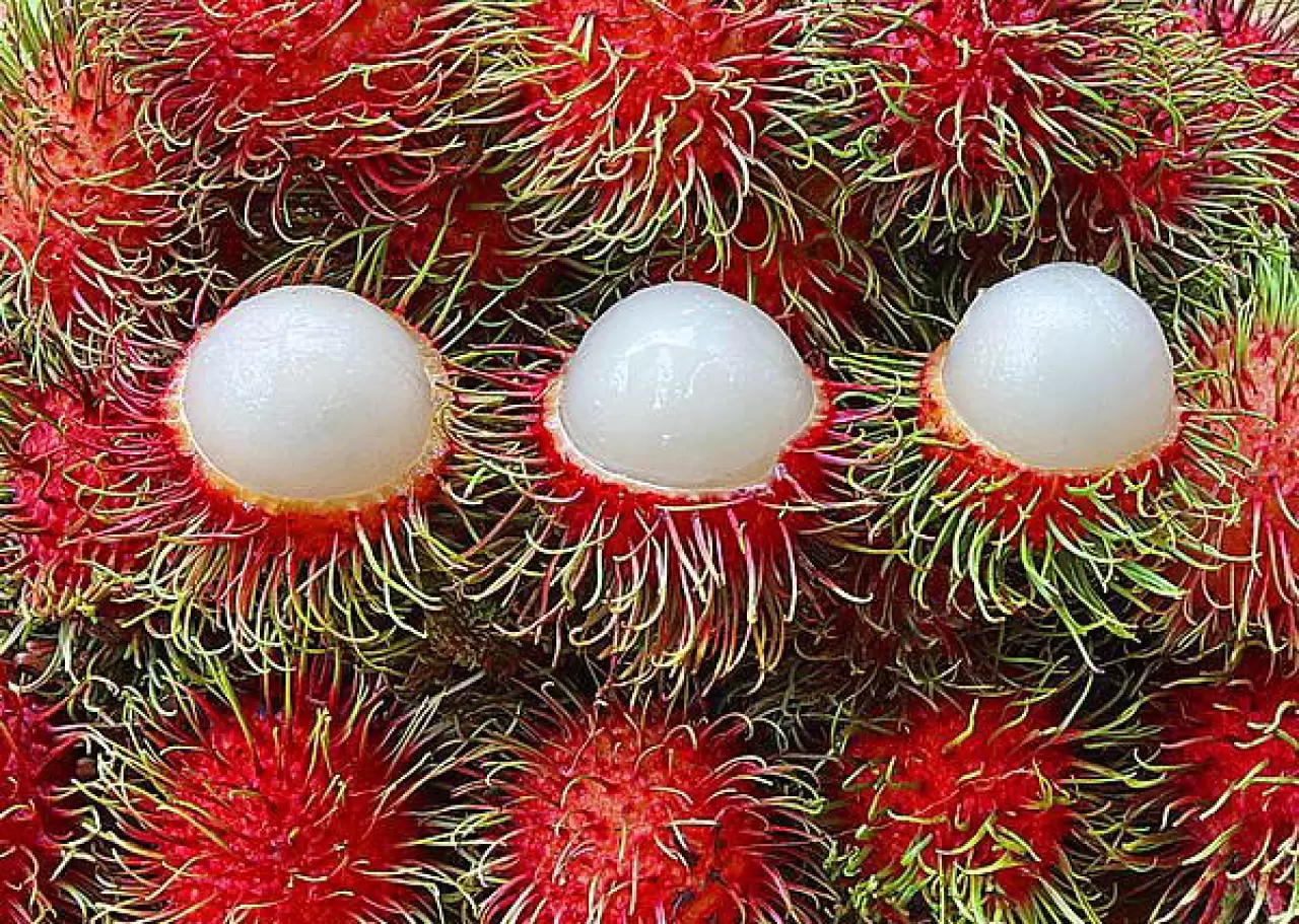 Rambutan, kelime anlamıyla “saçlı meyve” demek. Çünkü kabuğunun üzerindeki yumuşak tüycükler minik saç tellerini andırıyor. Kırmızımsı kabuğu soyulduğunda içinden çıkan yarı saydam beyaz meyve, üzümle liçi arasında bir tada sahip. Tatlı ama hafif ekşi aromasıyla yaz meyvelerini andırıyor.