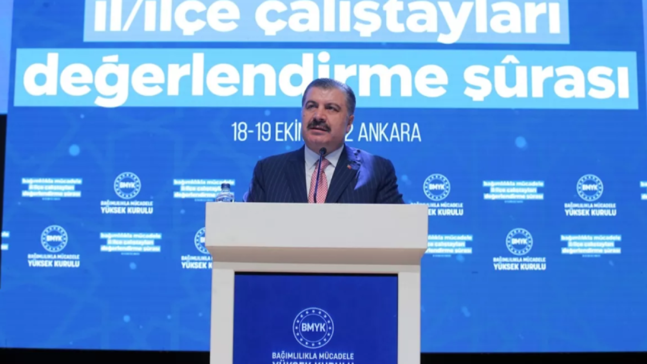 Bakan Koca, Cumhurbaşkanı Yardımcısı Fuat Oktay'ın katılımıyla ATO Congresium'da düzenlenen "Bağımlılıkla Mücadele İl/İlçe Çalıştayları Değerlendirme Şurası"nda konuştu.
