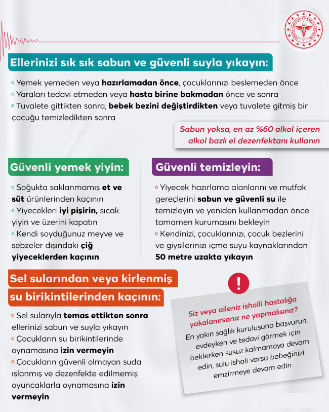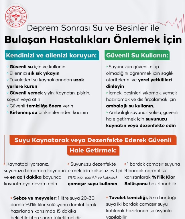 Sağlık Bakanlığı, deprem sonrası su ve besinler ile bulaşan hastalıkları önlemeye yönelik uyarılarda bulundu.