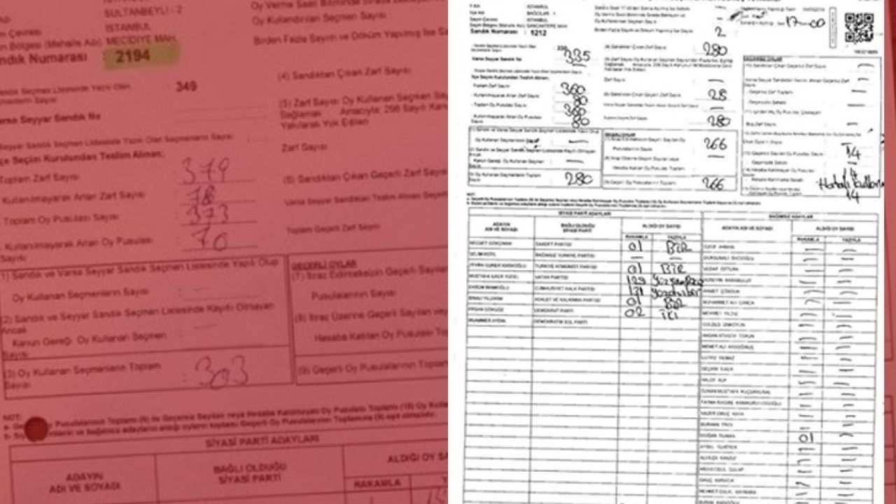 Kartal 1391 sayılı sandıkta AK Parti'ye verilen 173 oy YSK'ya 2 olarak bildirilmiş. CHP'ye verilen 97 oy ise YSK'ya 173 olarak bildirilmiş. AK Parti'nin 171 oyu eksik yazılmış CHP'ye 76 oy daha fazla yazılmış.