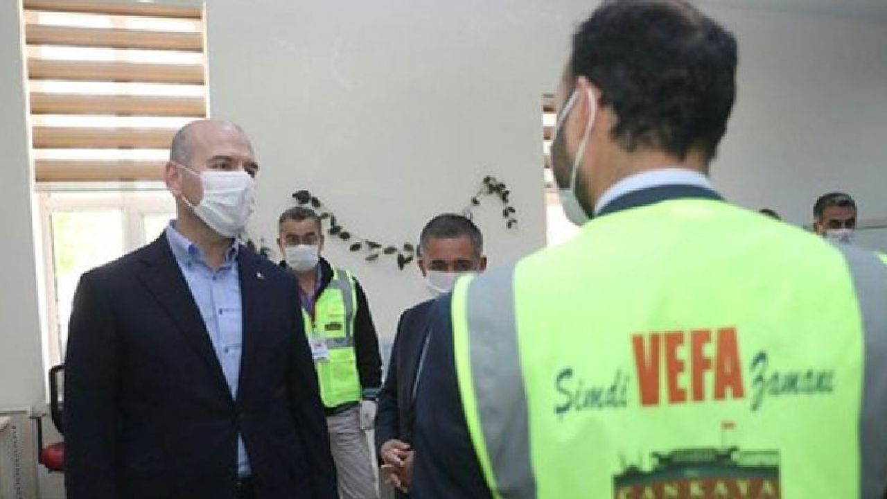 İçişleri Bakanı Süleyman Soylu, Ankara Valisi Vasip Şahin ve beraberindekilerle Çankaya Kaymakamlığı Vefa Sosyal Destek Koordinasyon Merkezi'ne geldi.